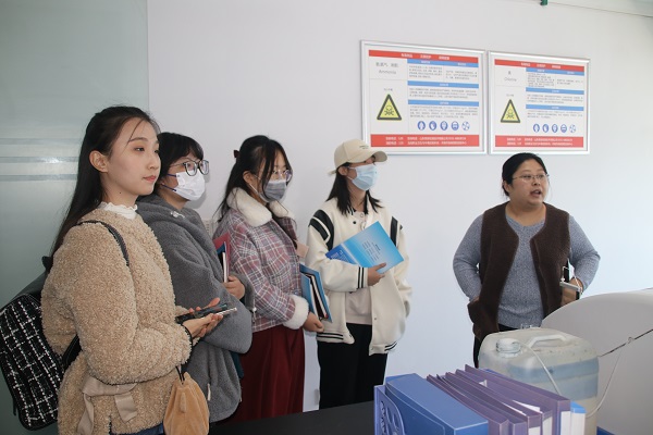 校友、信息化部经理张腾腾分享了自己在企业的成长体会。会后,学院一行参观了公司检验检测实验室。