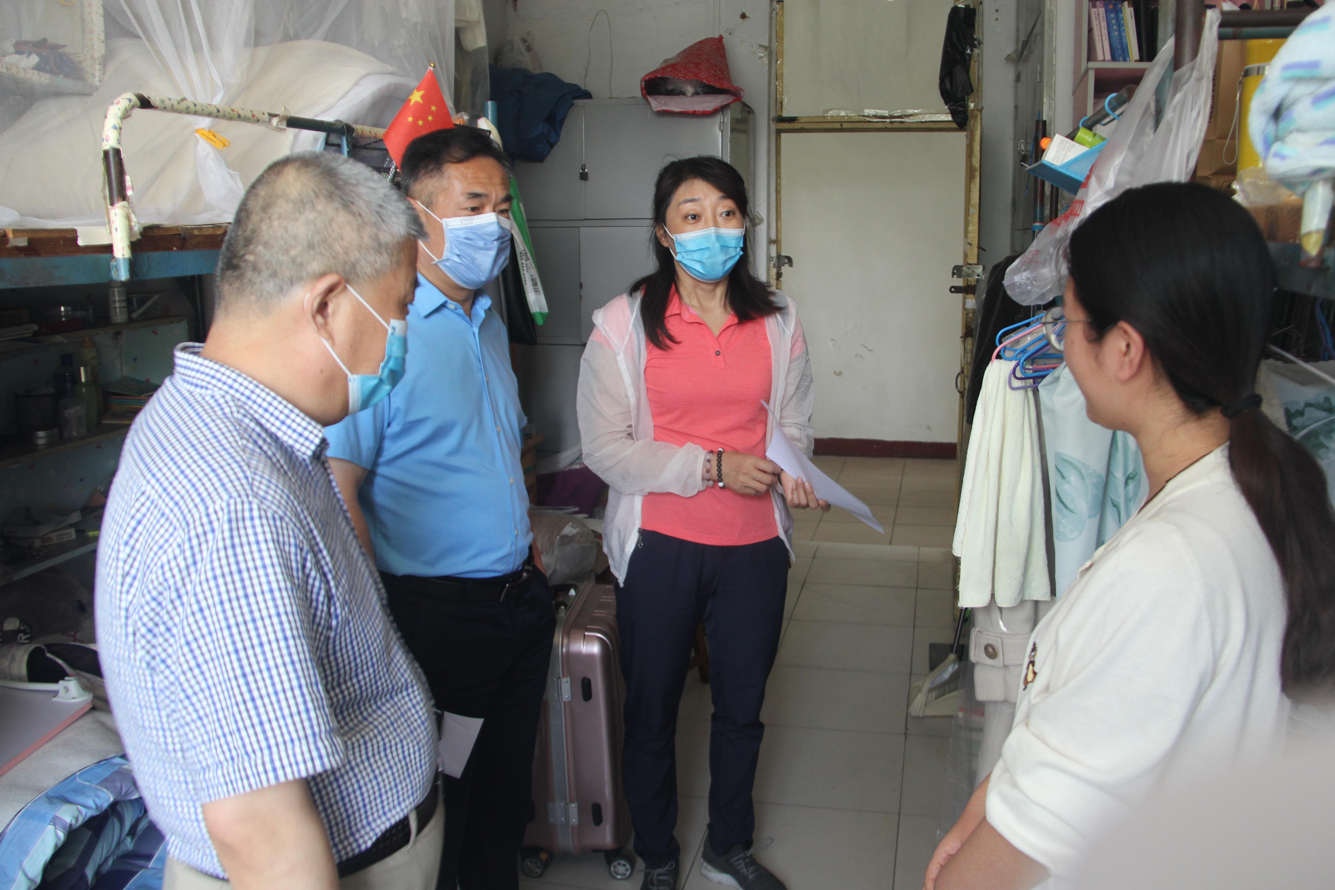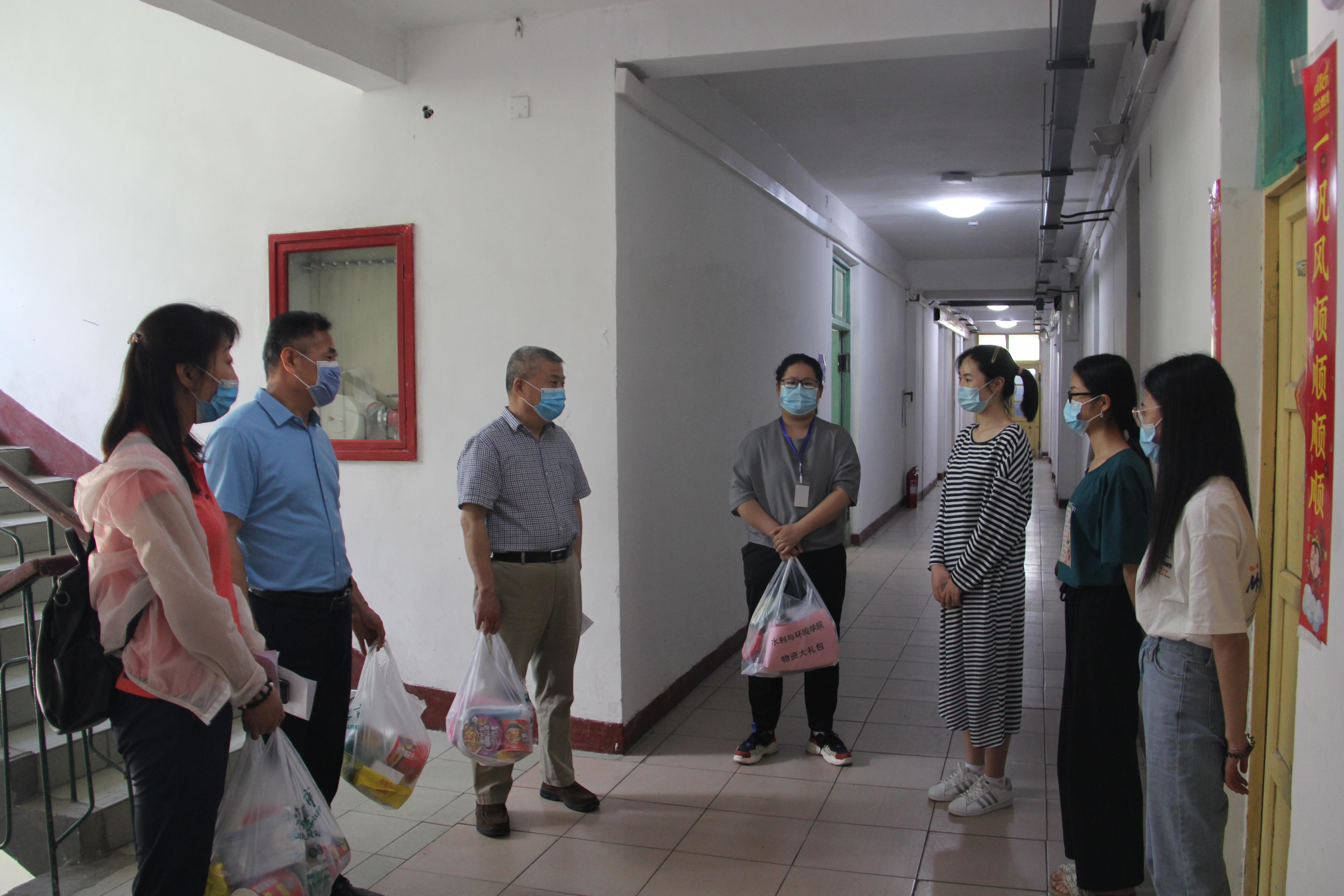 党委书记边健、院长徐征和、党委副书记张良红和学办老师到学1宿舍楼看望毕业班返校志愿者。