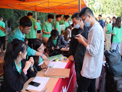 今年围绕“水环与你环环相扣”主题进行几点创新迎新安排。第一,迎新活动现场准备了迎新签名展板,新生们认真的在展板上签下自己的名字,手持“确认过眼神,你我都是水环人”“扣好人生每一粒扣子,过好大学每一个日子”等标语展板与家长合影留念作为“开学第一课”。第二,新生们在报到时都收到了印有“水环与你环环相扣”字样的手环与小风扇,做为新生的入学纪念。第三,“一见钟情,两心欢喜,三生有幸,四年水环我陪你”宿舍楼门前早已悬挂好的趣味横幅,让不少第一次离家的新生感受到了温暖。
