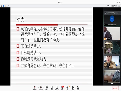 通过腾讯会议APP开展“打造核心竞争力,为党旗添彩”主题党课,美术与设计学院党委书记郝军主讲。