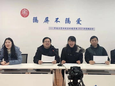 党委副书记张良红、副院长王仲鹏、副院长庞桂斌、2017级辅导员尹鑫组成的家访活动工作小组通过网络与安同学连线进行线上家访活动,在严冬时节为他送去温暖。