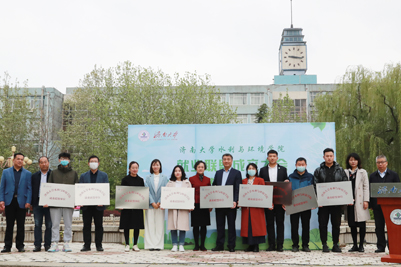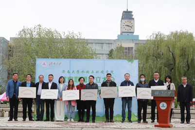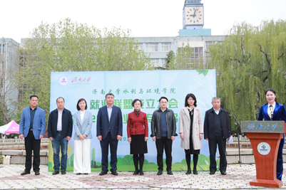 的发展沿革、人才培养、学科特色等情况。他谈到,学院以推进毕业生深度就业、全面提升毕业生就业层次和质量为导向,建立就业联盟,旨在发挥联盟单位的资源优势和政策带动作用,构建学校、社会、学生多方联动,合作共赢互助、协同创新发展的“双线”大学生就业创业服务新平台。山东水务投资有限公司党委书记、总经理修诚作为就业联盟单位代表致辞。他表示,就业联盟的成立,进一步推动了校企合作,有利于充分发挥企业、高校双方优势,共同培育高素质、高水平、应用型人才,实现资源共享、校企共赢。张硕秋副书记等领导为就业联盟单位授牌。