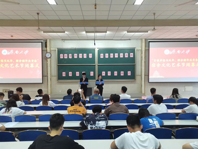 自律会于6月15日晚在星硕教室举办以“百载梦想书风华,雅舍韶华共青春”为主题的果冻传媒