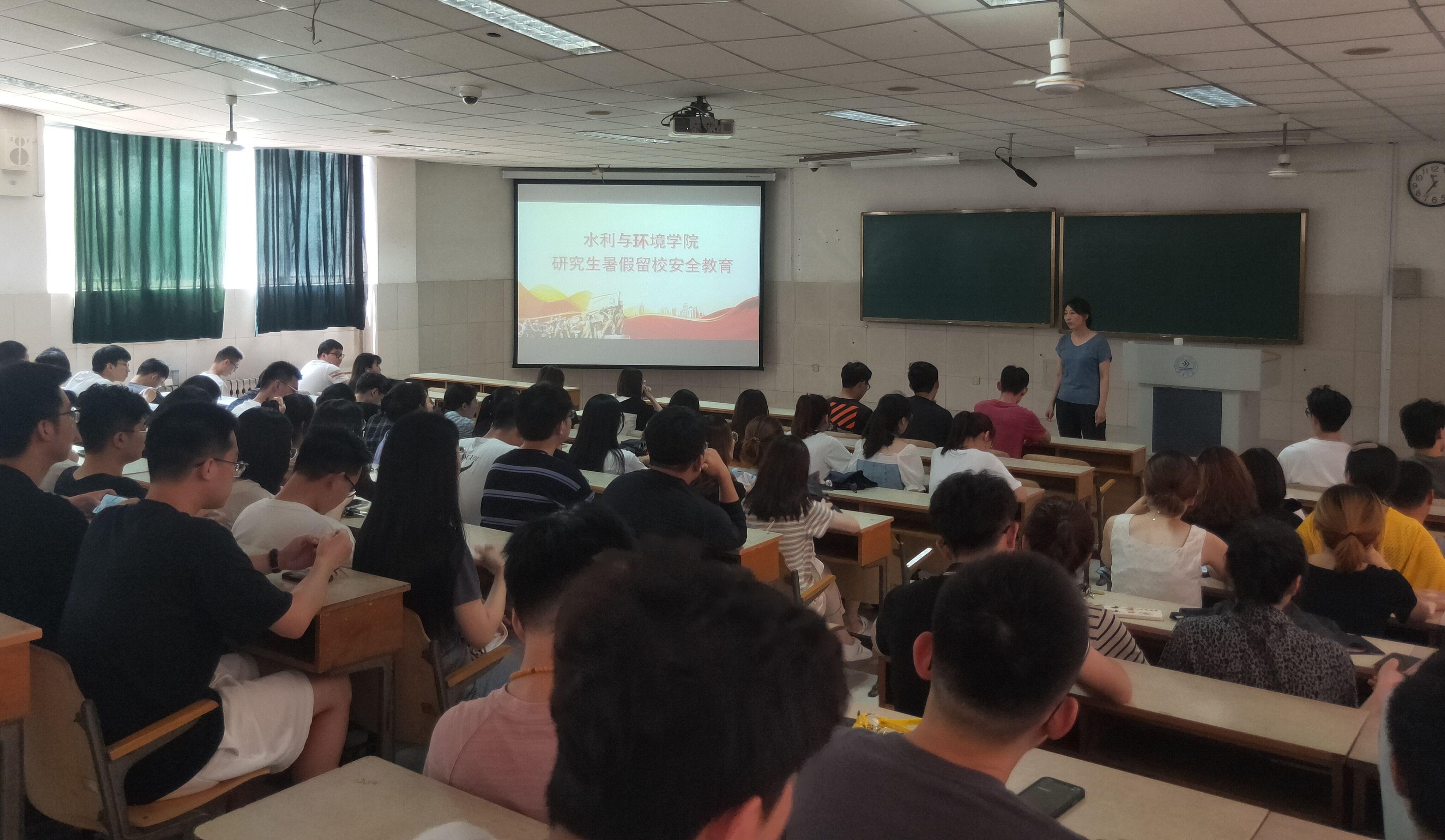 举行研究生暑假留校安全教育会议。学院党委副书记、副院长张良红、研究生辅导员赵敬媛和在校100余名暑假留校研究生到场参加。