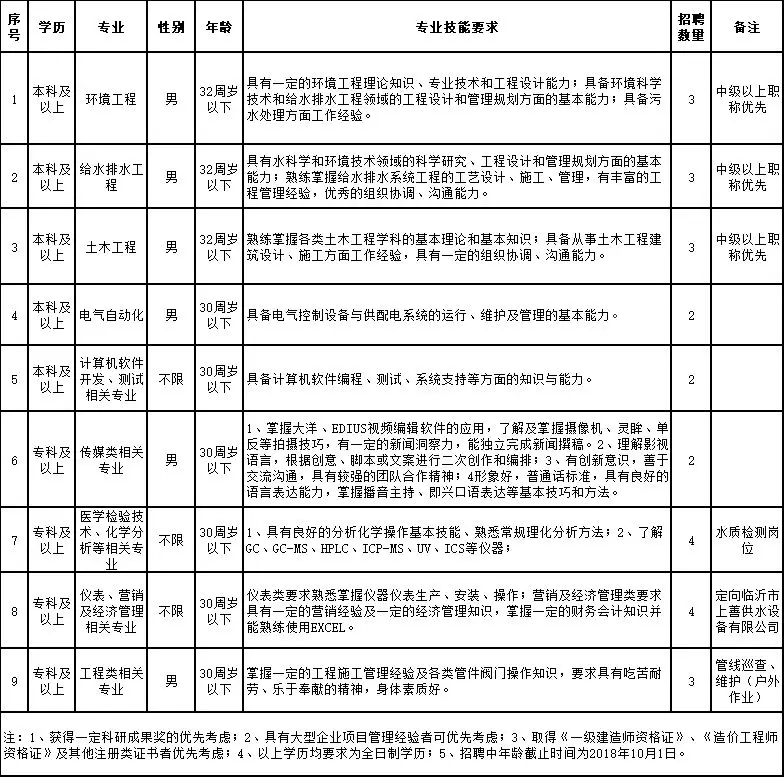 3、环境工程、给水排水工程、土木工程三个专业具备中级及以上职称的人才试用期满,经考察研究后,享受《临沂市水务集团有限公司薪酬管理暂行办法(试行)》规定的中层助理待遇。