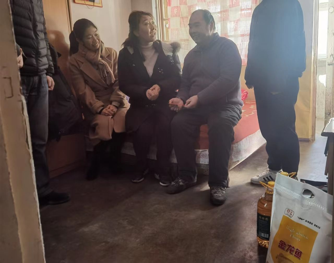 家访小组来到孟同学家中,张良红书记首先向受访孟同学父亲表达来意、亲切慰问,关爱之心溢于言表,并亲手将慰问金、慰问品送到孟同学父亲手中,并提前送上了新春的祝福。老师们与孟同学父亲交流了孟同学的学习成绩与在校表现,孟同学父亲听到老师们对孟同学的肯定,非常欣慰和感激。老师们进一步询问了目前家庭还面临着什么困难,孟同学父亲表示感谢老师们在寒冷的天气,特意过来关心他们,很感谢学校的帮助,孩子拿到奖学金和助学金很大程度上减轻了家里的经济负担。而后,在交流过程中,老师们耐心倾听、细心解答了孟同学父亲和孟同学关心的专业发展前景、考研情况、未来就业规划等问题。同时,张良红书记也对孟同学提出了几点希望:一、把重心放在学习上,学习生活中多学习英语,争取早日通过英语四级与六级考试;二、多参加社会实践活动,不断提升综合素质,争取获得保研资格;三、保持良好的进取心态,无论原生条件如何,都要凭借自己的努力慢慢成长。