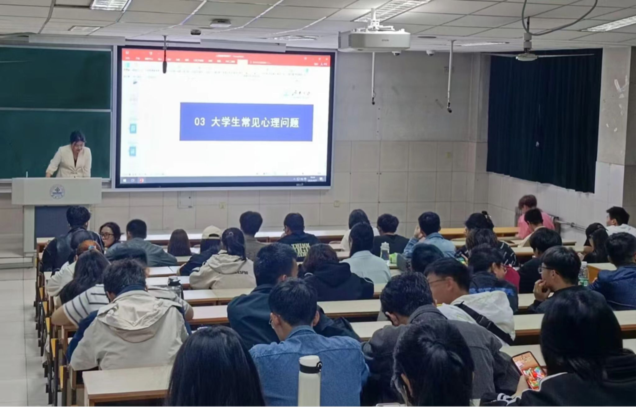 在培训大会上,高雅琳老师就“健康新概念”、“心灵使者的角色定位及职责”、“大学生常见心理问题”、“心理危机的识别及应对”以及“心理健康基本能力测试”几个方面对各班心灵使者和心灵联络员进行了详细的介绍。在讲课时,高雅琳老师不仅通过具体案例让同学们了解到心灵使者职务的重要性,还通过互动答题和演练的方式让同学们快速了解要点并转化为自己的知识运用出来,最终利用小测试的方法检测心灵使者对知识的了解情况。