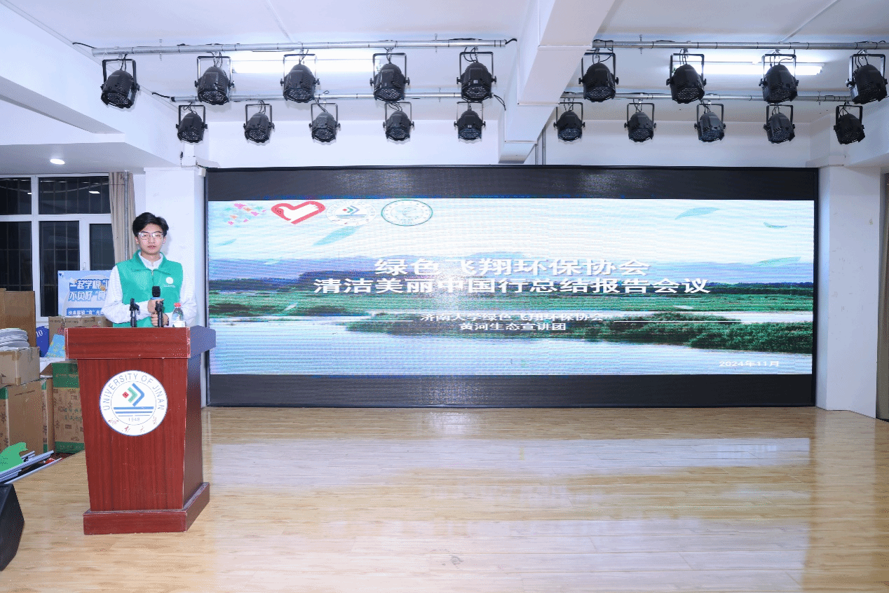 之后,社长朱庆源进行“清洁美丽中国行”小额资助项目总结报告暨社团中期汇报,呈现项目成果与进程。
