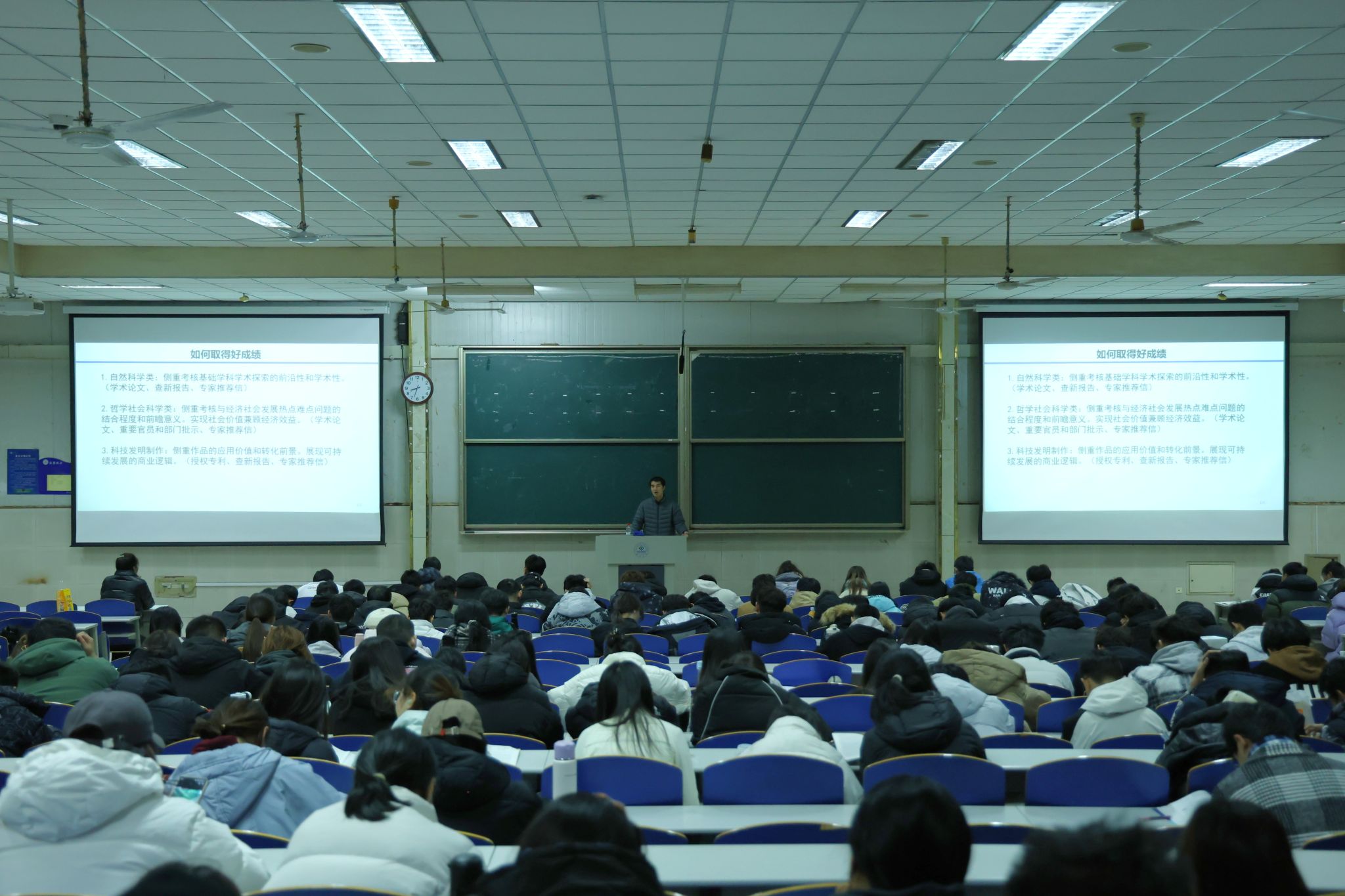 樊祥宇老师从竞赛宗旨、目的和方式三个方面详细解读了“挑战杯”竞赛章程,深入分析了“挑战杯”竞赛的评审规则,并对赛道的选择进行了科学指导。随后,樊祥宇老师分享了“挑战杯”竞赛获奖的三点关键要素。一是选题需紧密贴合时代特征,具有创新性切入点。二是要注重理论与实践相结合。三是严格落实项目申报规范格式。讲座最后,樊祥宇老师结合实际案例,为同学们展示往届优秀获奖作品得分点,使学生们更直观地了解到赛事材料准备的高标准要求,他鼓励同学们要勇于创新,勇于实践,学会学研融合互促,不断提升自己的综合素质。