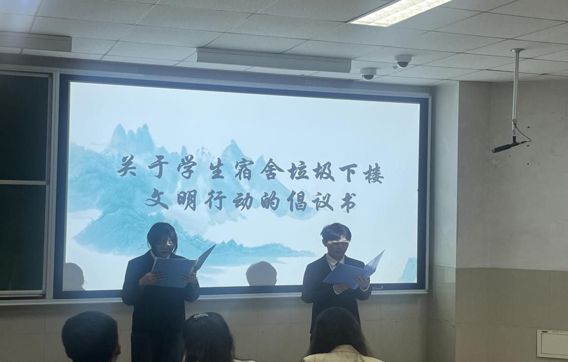 最后,主持人宣读《宿舍卫生与文明规范倡议书》,呼吁全体同学积极响应倡议,从自身做起,从小事做起,共同培养健康卫生习惯,携手构建温馨、整洁、文明的宿舍家园。