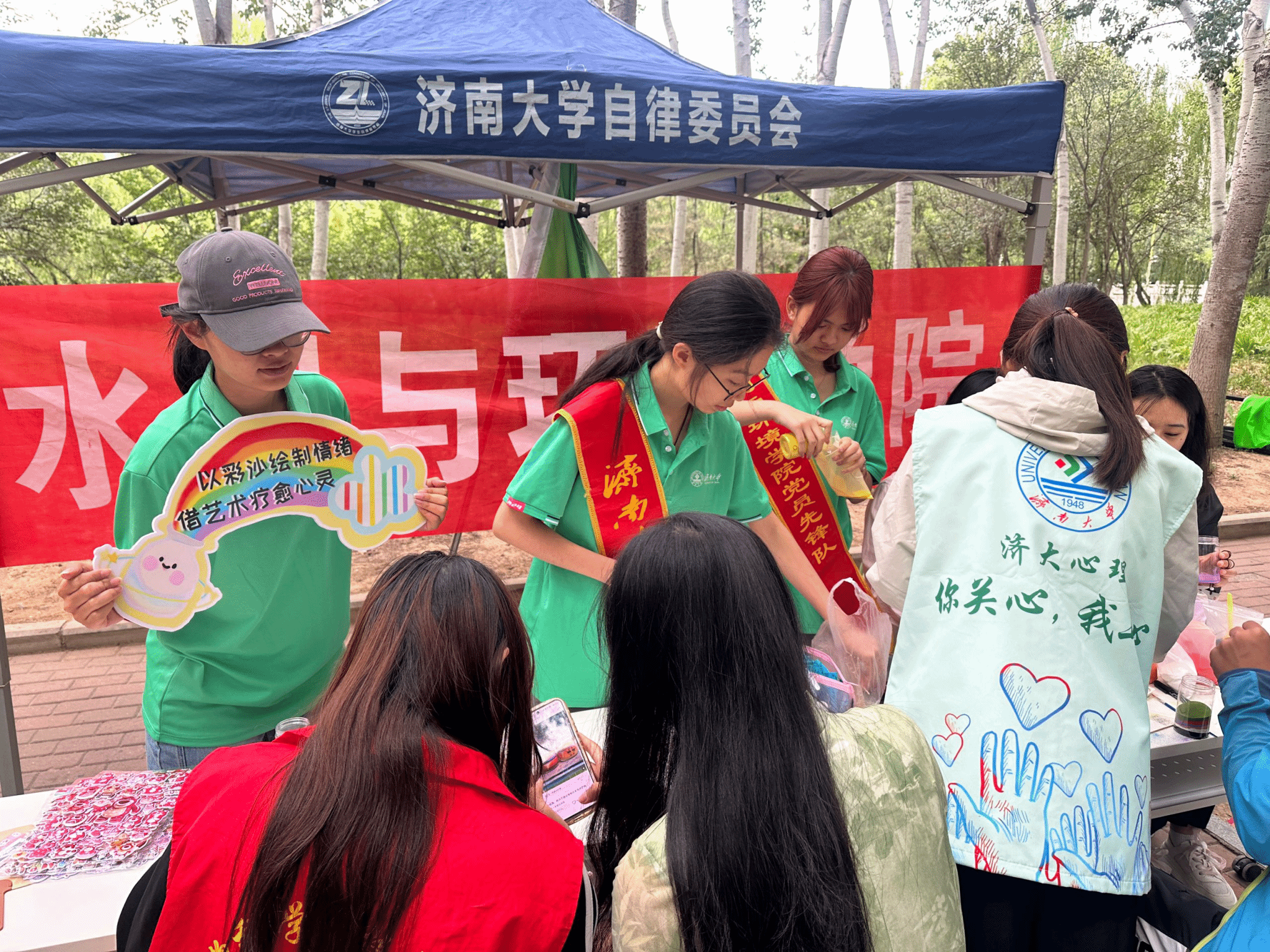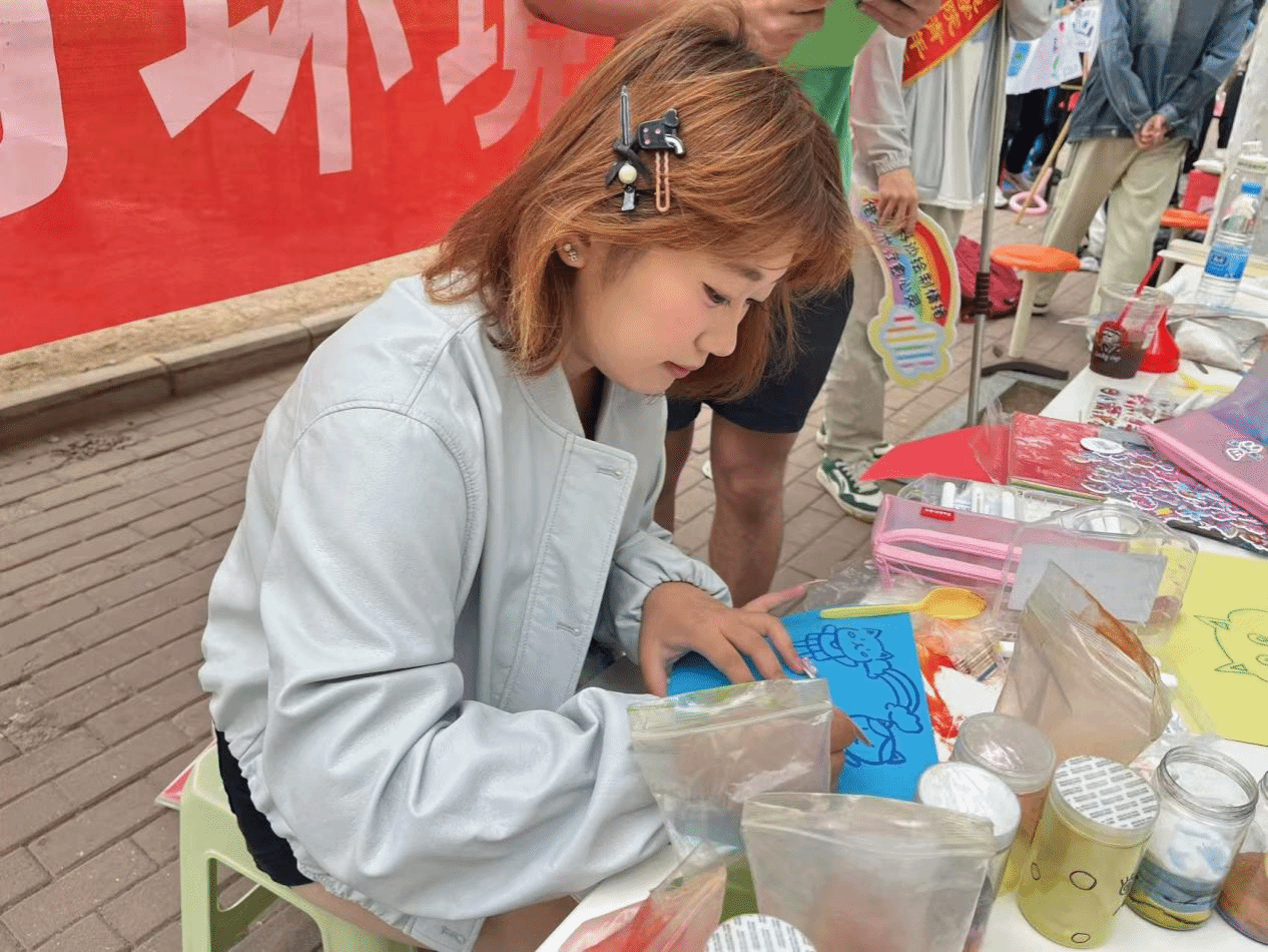 展台前参加活动的同学络绎不绝,现场气氛热烈。参加“情绪探索瓶”、“心理彩沙画”活动的同学表示:“制作彩沙瓶、彩沙画这种活动,让我回想起了小时候学绘画,无忧无虑,在参与中释放了情绪和压力,更是一次心灵的探索和成长。”