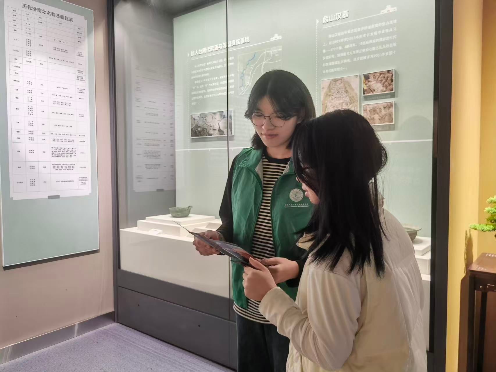 活动当日上午,协会成员携带精心准备的黄河流域生态保护知识手册、宣讲资料及记录设备,有序前往济南博物馆。“博物馆里的每一件文物,都是黄河与济南共生共荣的活化石。”在黄河文化展区,宣讲组以馆藏文物为切入点,结合史料向志愿者与观众细致讲解——从反映黄河农耕文明的唐代陶仓,到见证古代治黄智慧的明代铁锸,再到记录黄河航运历史的清代漕运模型,讲解员用通俗的语言,梳理黄河与济南千年相依的历史脉络,让大家在文物的“讲述”中,读懂黄河文脉的厚重,唤醒对黄河文化的保护与传承意识。