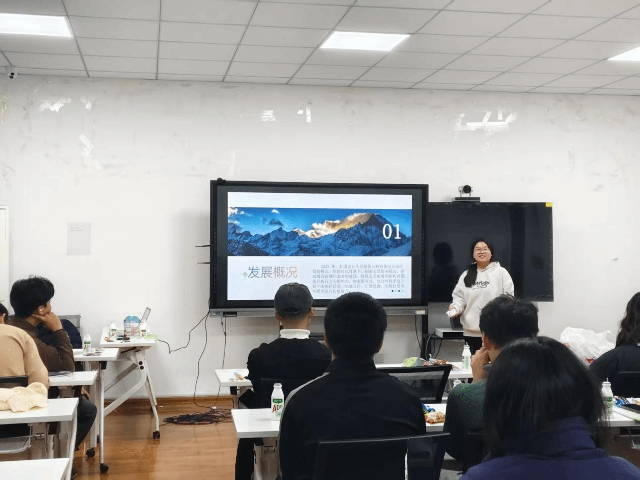 会议伊始,副社长率先登场,全面讲解社团发展概况。立足新时代发展浪潮,社团在迭代中不断突破:创新服务模式;优化人员配置与机构设置;融合科技手段探索生态保护新路径,让环保行动更具活力。自成立以来,社团多次联合山东省内企业、政府部门及社会公益组织,成功开展黄河宣讲、“翱翔之翼”科技志愿服务、“清洁美丽中国行”、“三下乡”志愿实践等一系列特色活动,用实际行动践行环保使命。