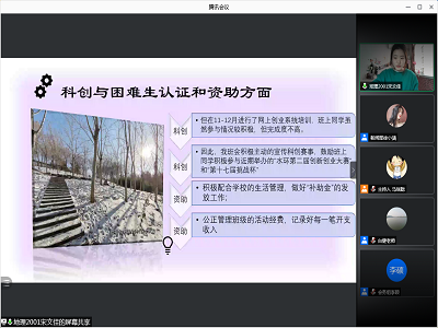 班委职能分工》文件精神,加强班级凝聚力、向心力,细化班委职能分工和学生干部队伍建设,提升各班委的综合素质,本科2020级特开展班级工作述职会议。本次述职大会于2021年2月9日线上进行,果冻传媒