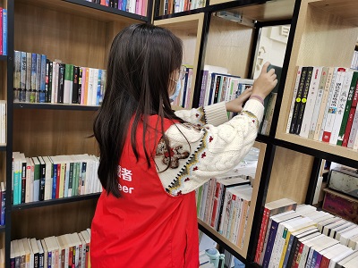 环抱碧水青年志愿者协会成员在张通老师指导下于2021年10月24日前往泉城书房(振兴街道分馆)参与图书管理、维持馆内秩序等志愿服务。