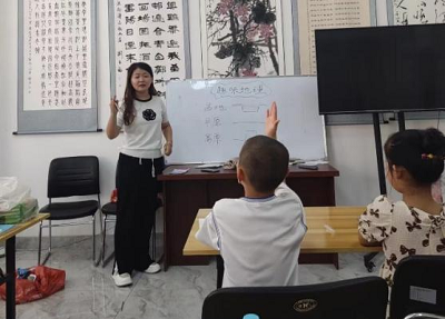 地师2201班陆琦同学来到泰安市宁阳县文庙街道德园社区根据学生具体情况以及社区工作安排,积极投入到支教活动中去。陆琦同学督促学生进行早读,帮助学生理解背诵古诗词,同时采用循循善诱等方式让年纪较小的学生爱上古诗,让学生体会中华优秀传统文化之美;与其他志愿者合作,教学生学习折纸,绘制团扇,磨练孩子的耐心,增强学生的动手能力,培养孩子更多的兴趣爱好。孩子们都认真学习,展现出了对艺术的热爱;与其他志愿者去慰问建档立卡家庭的孩子,为他们送去物质上的支持和精神上的关怀。