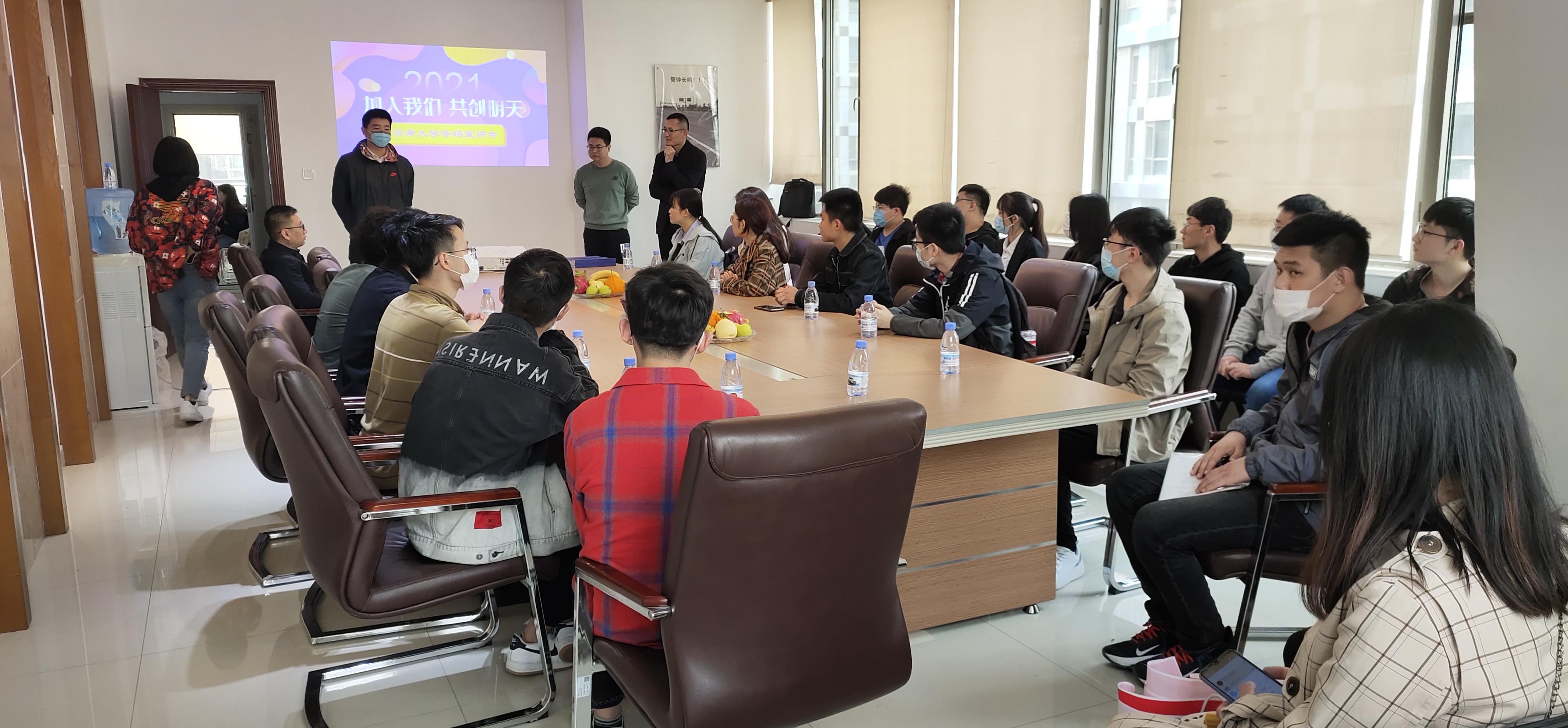 优秀校友李刚对同学们的到来表示热烈欢迎。李刚表达了对母校培养的感激之情,希望有更多优秀的济大学子加入到公司,他热情引导同学们参观了公司各部门,讲述了公司的创建和成长发展史,帮助同学们直观了解工作环境、工作内容。随后,公司开展面对面交流会,部门负责人介绍了公司概况、公司文化、组织架构、工作范畴以及岗位需求,同时,在公司就职的济大优秀校友们通过分享自己的求学经历和工作感悟,积极与同学们深入沟通、答疑解惑。同学们纷纷表示,此次职业体验活动收获很大,通过实地参观交流,帮助他们加深对企业的认知了解,也进一步明确自己的职业目标和职业规划。