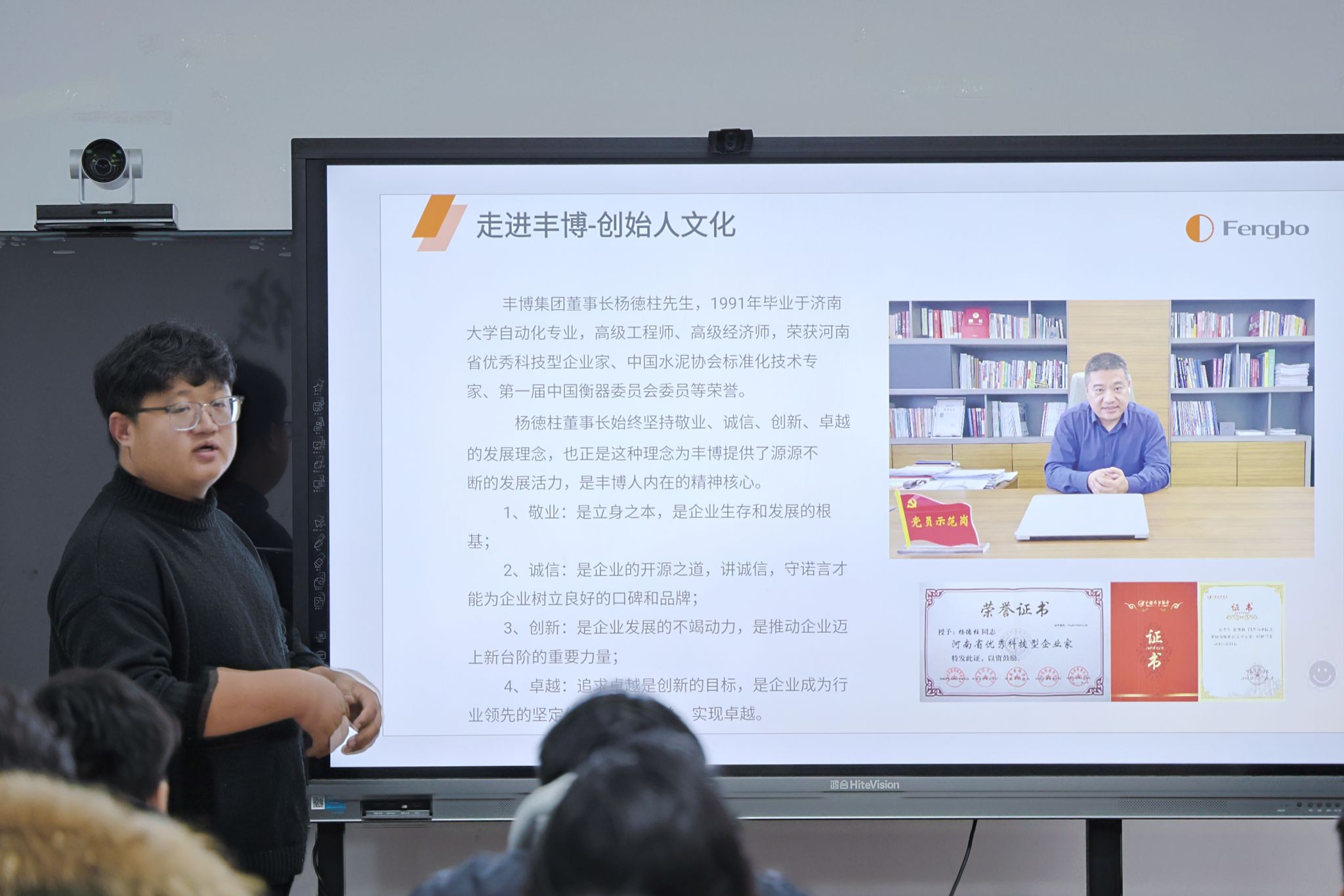 于九教105教室举办校友企业丰博计量集团专场宣讲招聘会。学院相关专业毕业年级本科生和研究生积极参与。